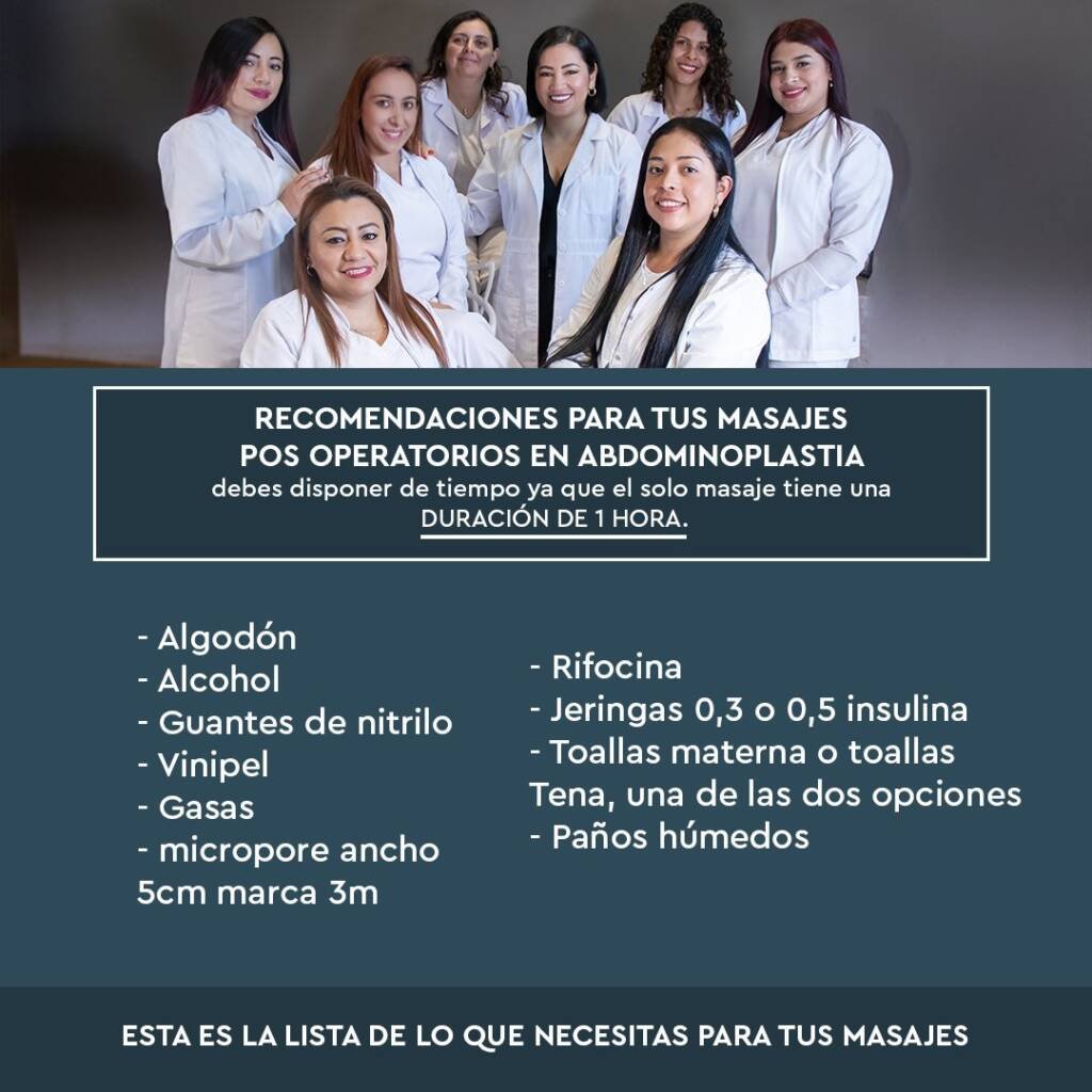 Parte de la preparación para tu masaje postoperatorio es que puedas tener todos los insumos listos para la esteticista. En el paquete postoperatorio se te incluyen, sin embargo aquí de dejamos el listado de insumos que debes tener: